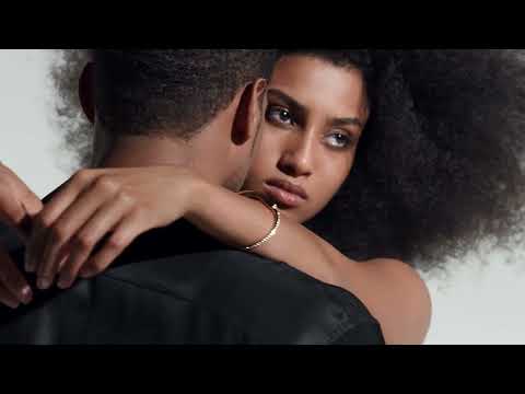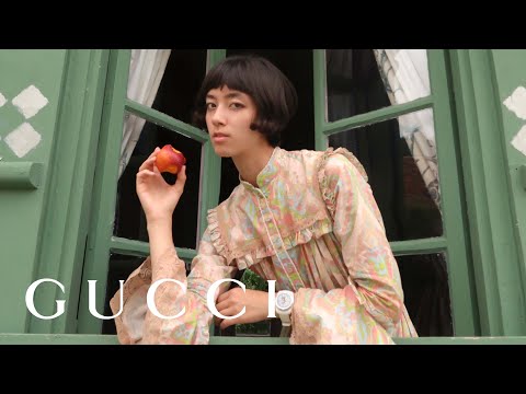 In the omnipresent gaze of the blinking eye, the viewer can see the model peering through a large glass jar. Based on the woman’s sweet and enamored expression, the scene alludes to a sense of childlike wonder.